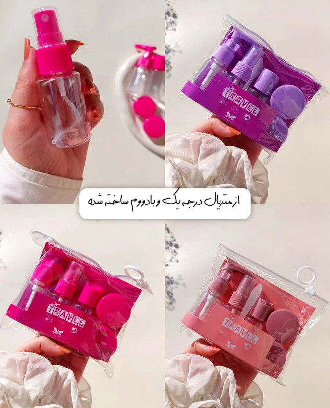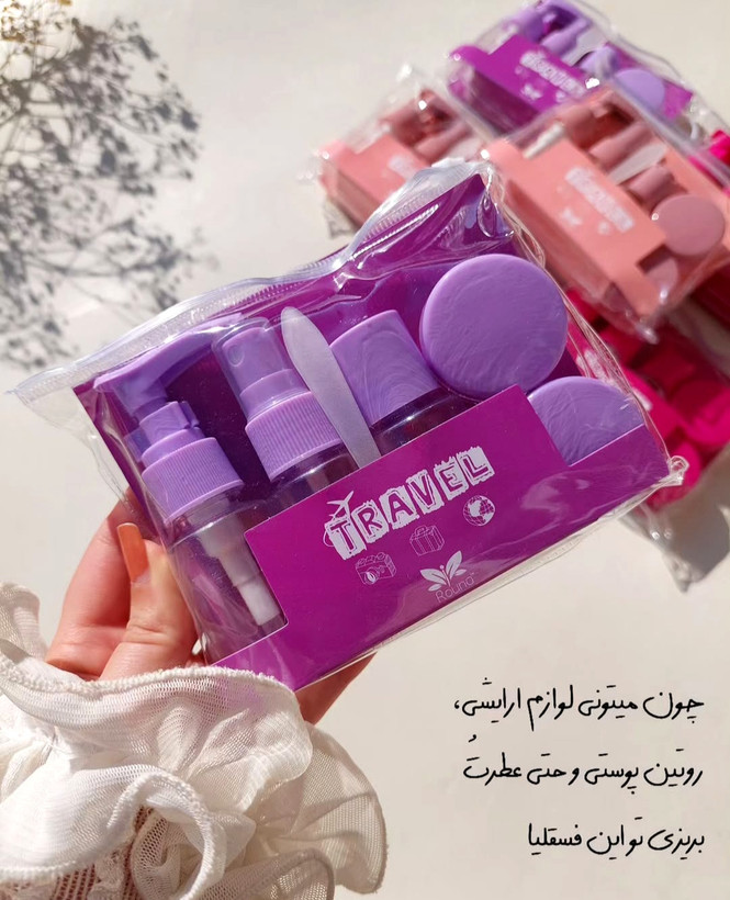 مزایای استفاده از ست مسافرتی5 تکه: استفاده از این پک به شما این امکان را میدهد که در صورت فراموش کردن لوازم مراقبتی خود یا خراب شدن بر اثر گرما، خسارت کمتری به شما وارد شود زیرا فقط چند میل یا چند گرم از مواد آرایشی و مراقبتی پوست شما در این ست نگهداری شده است. این محصول موجود در 8 رنگ میباشد.