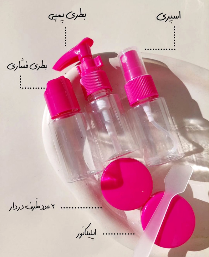 پک مسافرتی 5 تکه دارای 5 محفظه و یک قیف به همراه یک کیف است که هنگام سفر مورد نیاز شماست. مواد آرایشی و بهداشتی خود از قبیل عطر، کرم پودرها و شسشتو دهنده پوست و مو را داخل این پک مسافرتی قرار داده و به هراه خود ببرید. با استفاده از این ست مسافرتی حجم کلی مواد آرایشی مصرفی کاهش مییابد و به راحتی با اشغال کمترین فضا داخل کیف شخصی شما جا میشود.