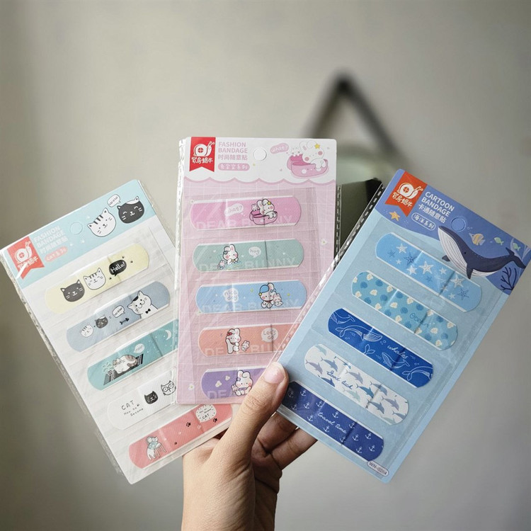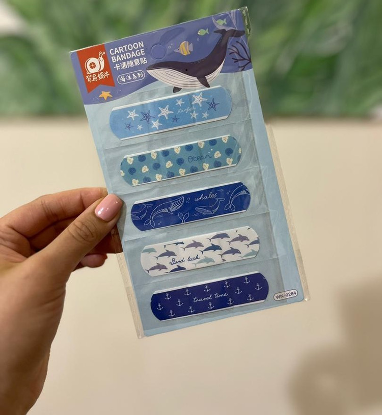 چسب زخم ضدآب فانتزی طرح کارتونی، از 5 عدد چسب زخم ضدآب با طرح دختر تشکیل می شود که طرح چسب زخم ها متفاوت است و در کنار یکدیگر روی یک برگه قرار داده شده اند.