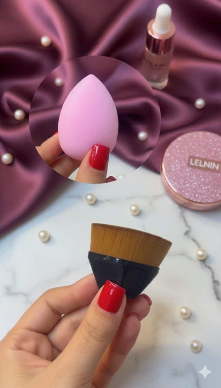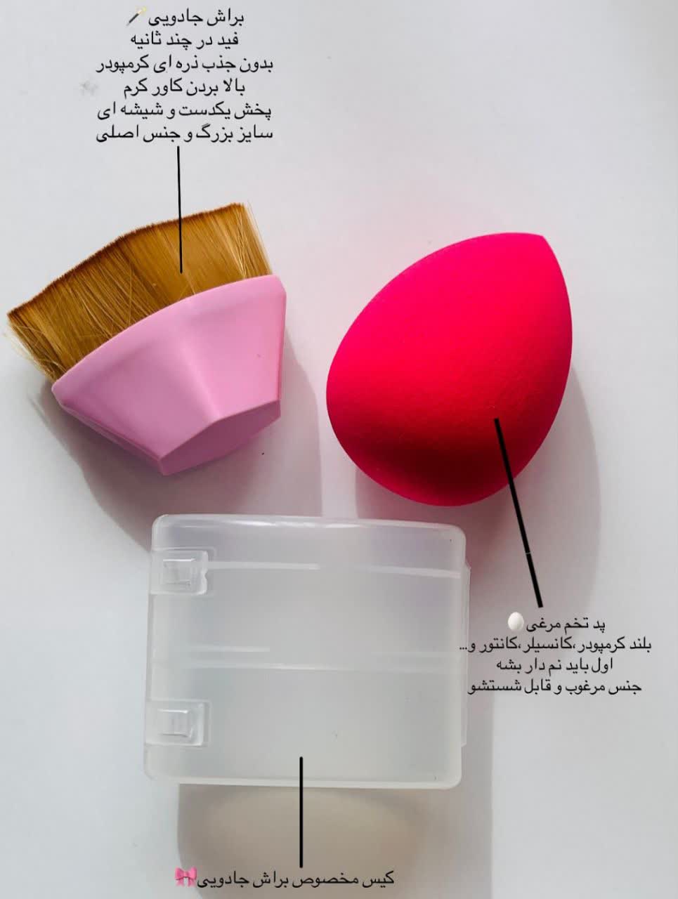 پک 2 تایی پد تخم مرغی و براش کرم پودر ابزاری حرفهای برای آرایشی یکدست پد نرم، براش متراکم، قابل شستشو و بادوام مناسب برای فید کردن کرم پودر، کانسیلر و مواد کرمی