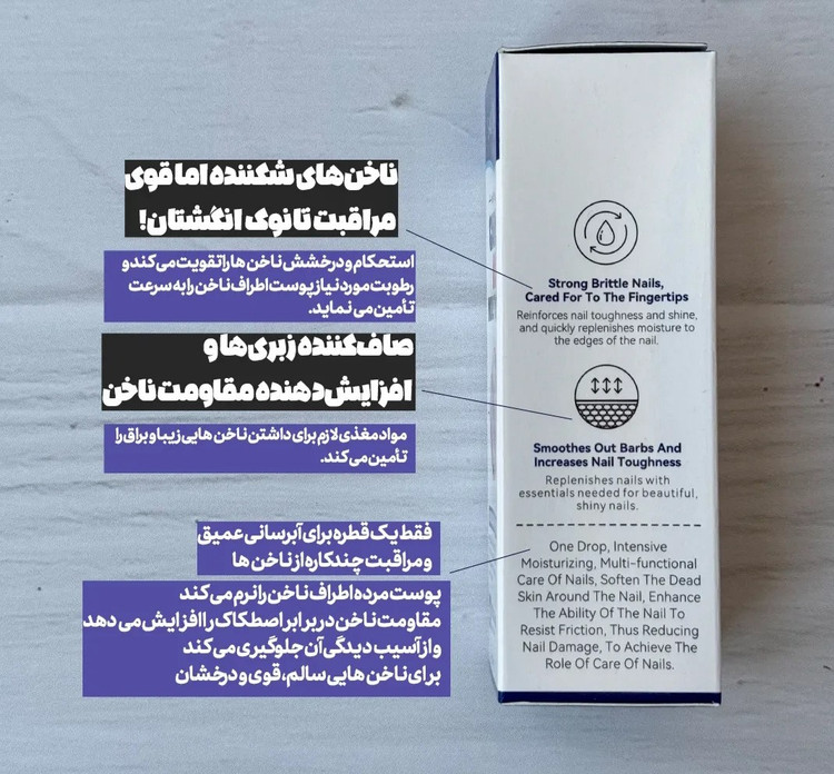 ۲. با استفاده از قطرهچکان، مقدار کمی از سرم را روی ناخنها و کوتیکولها بچکانید.