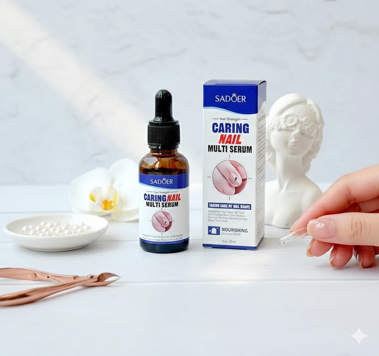 سرم تقویت و ترمیم ناخن Sadoer Caring Nail Multi Serum یک محصول تخصصی برای افرادی است که از شکنندگی، لایهلایه شدن یا خشکی ناخنها رنج میبرند. این سرم با ترکیبی قدرتمند از گلیسیرین، هیالورونیک اسید، آلوئه ورا، عصاره سنتلا آسیاتیکا و سایر مواد مغذی، ناخنها را عمیقاً آبرسانی کرده و به بازسازی کوتیکول ها کمک میکند. استفاده منظم از این محصول باعث استحکام ناخن، کاهش ترک و پوسته پوسته شدن و افزایش شفافیت و سلامت ناخنها میشود.