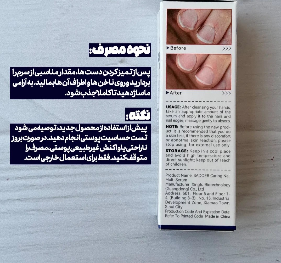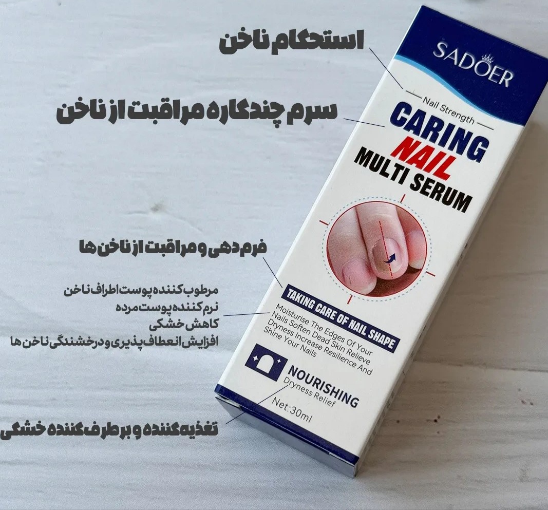 سرم تقویت و ترمیم ناخن Sadoer Caring Nail Multi Serum یک محصول تخصصی برای افرادی است که از شکنندگی، لایهلایه شدن یا خشکی ناخنها رنج میبرند. این سرم با ترکیبی قدرتمند از گلیسیرین، هیالورونیک اسید، آلوئه ورا، عصاره سنتلا آسیاتیکا و سایر مواد مغذی، ناخنها را عمیقاً آبرسانی کرده و به بازسازی کوتیکول ها کمک میکند. استفاده منظم از این محصول باعث استحکام ناخن، کاهش ترک و پوسته پوسته شدن و افزایش شفافیت و سلامت ناخنها میشود.