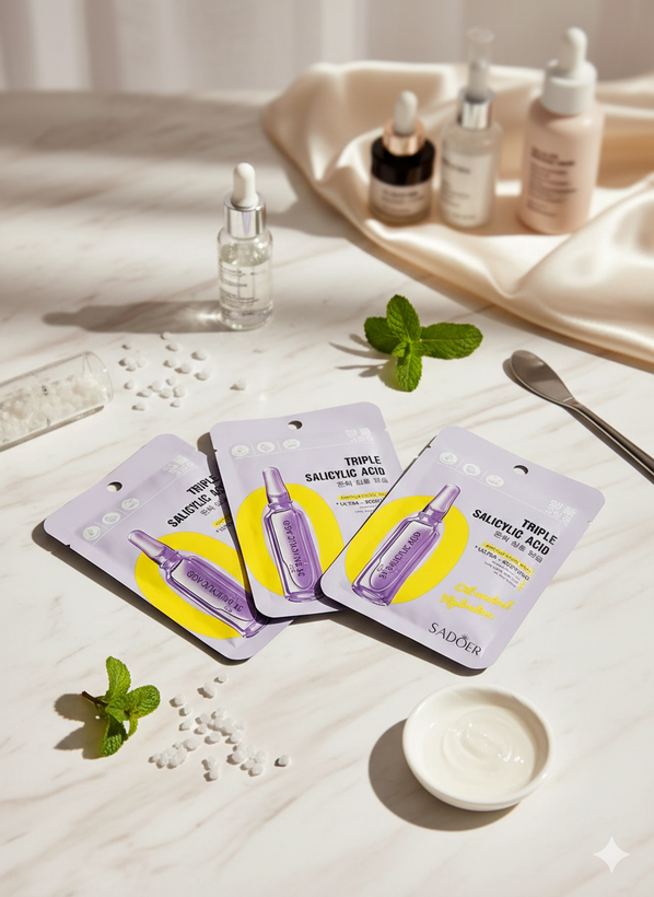 ماسک ورقهای پیشرفته با فرمول اسید سالیسیلیک سهگانه، راهحلی تخصصی برای پوستهای چرب و مستعد آکنه است.