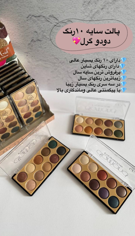 این محصول در سه سری رنگ کاربردی و عالی داره .از پالت سایه چشم ۱۰ رنگ دودو گرل مدل دیاموند می توان علاوه بر سایه چشم به عنوان هایلایتر هم استفاده کرد🤌